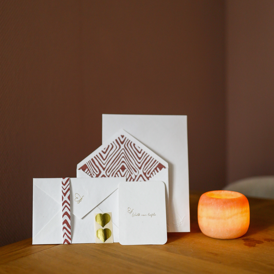 Wat een liefdevol, stevig en puur briefpapier. Hierdoor mag alle aandacht gaan naar de boodschap, de woorden die erop geschreven worden. En zit de kracht van het papier in het dragen van deze boodschap. Door de kwaliteit van het papier, de verpakking en het subtiele logo. Heel mooi.
