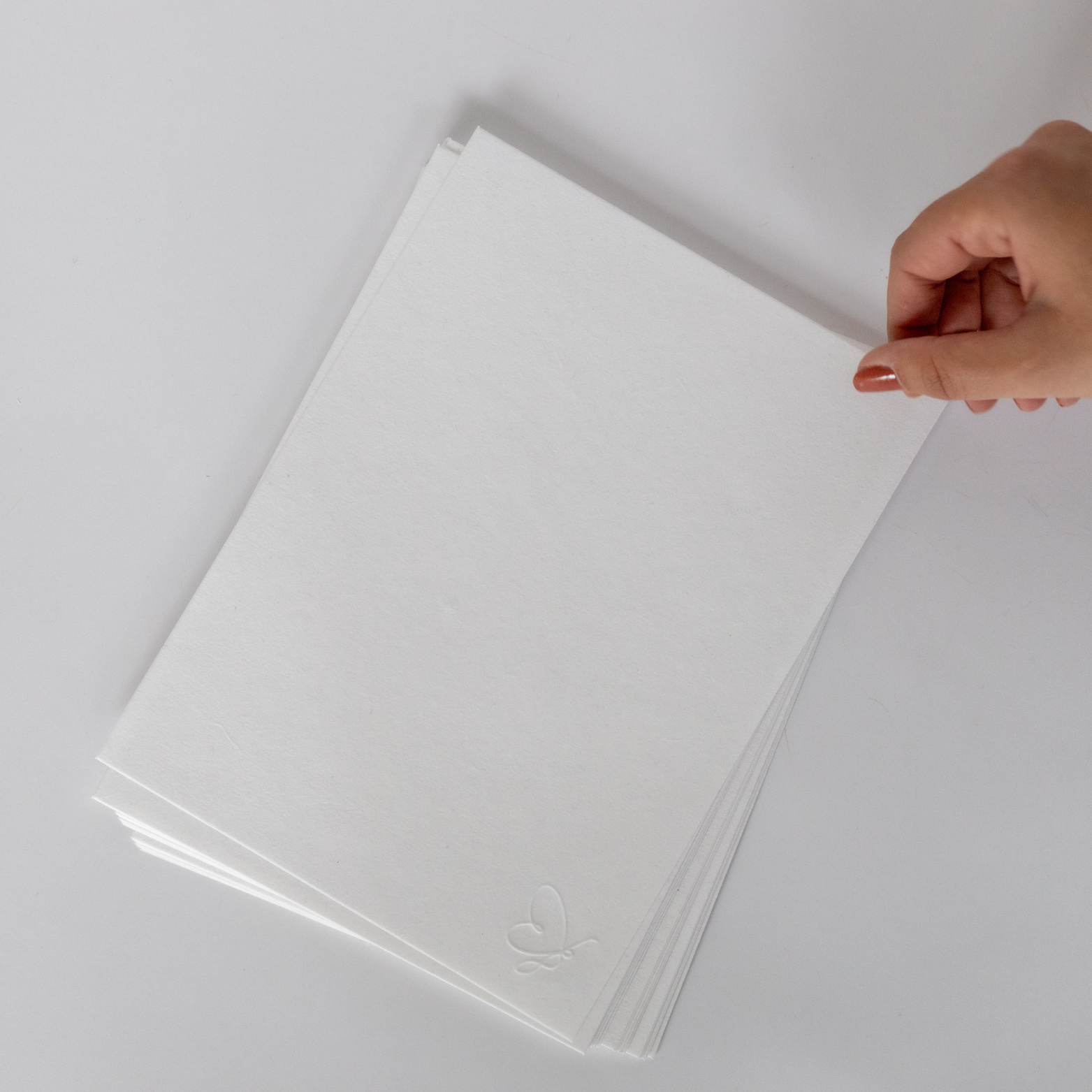 Deze mooie set duurzaam briefpapier, gemaakt van gerecycled katoen, bevat 10 brieven en 10 enveloppen. Mooi om los te versturen of als aanvulling op je Wolk van liefde briefpapier box.